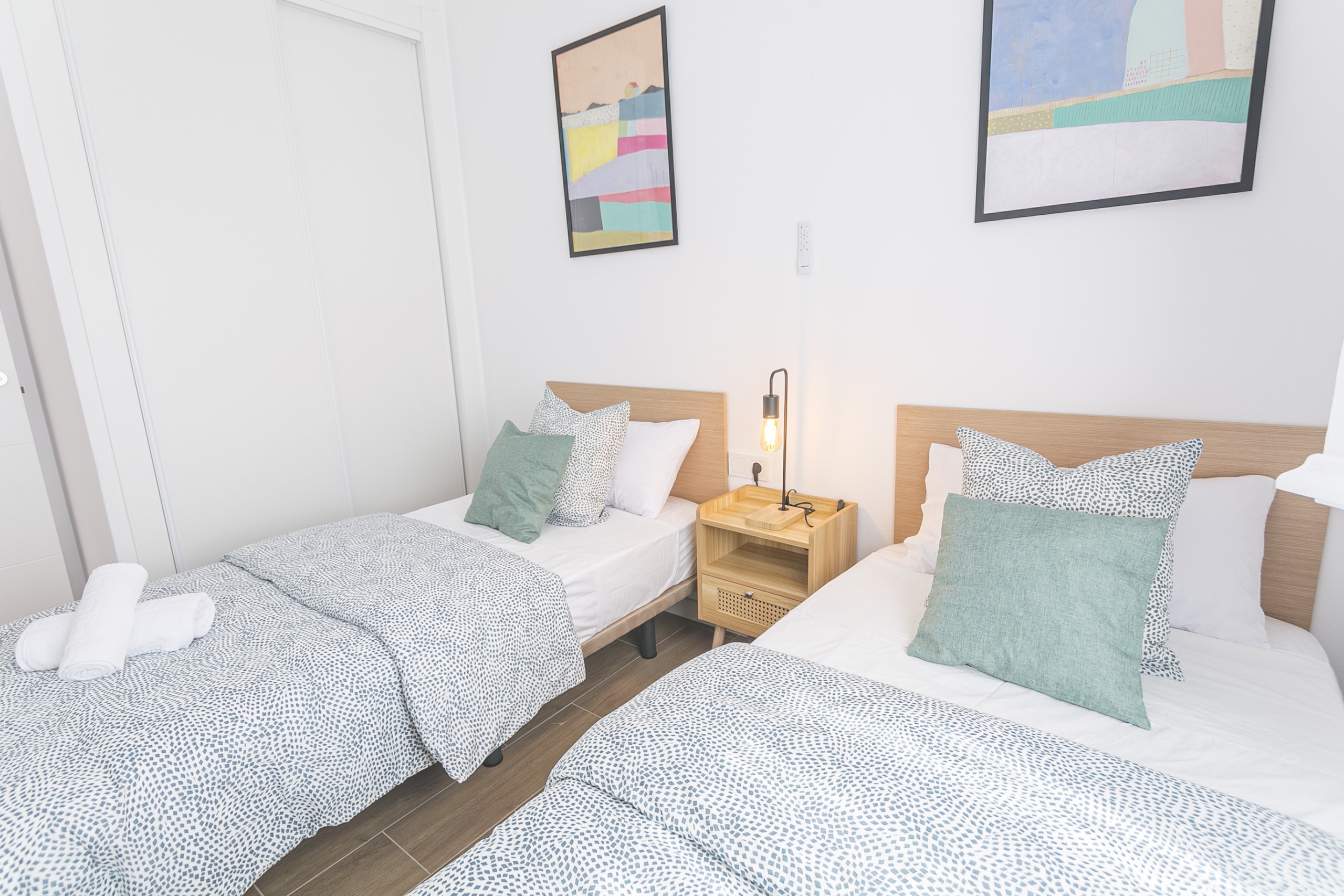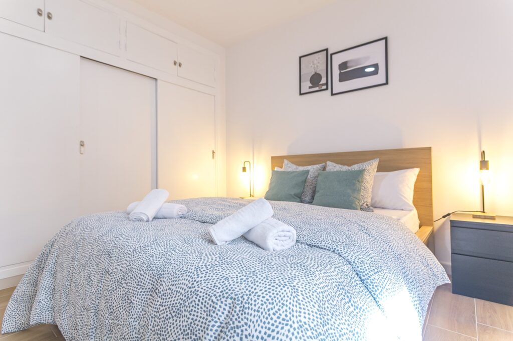 El alojamiento cuenta con 2 dormitorios (uno con cama doble y otro con dos camas individuales), además de un sofá cama en el salón, lo que permite alojar hasta 5 personas. Dispone de 1 baño con ducha, salón-comedor luminoso y una cocina totalmente equipada con lavavajillas, lavadora, microondas y nevera.